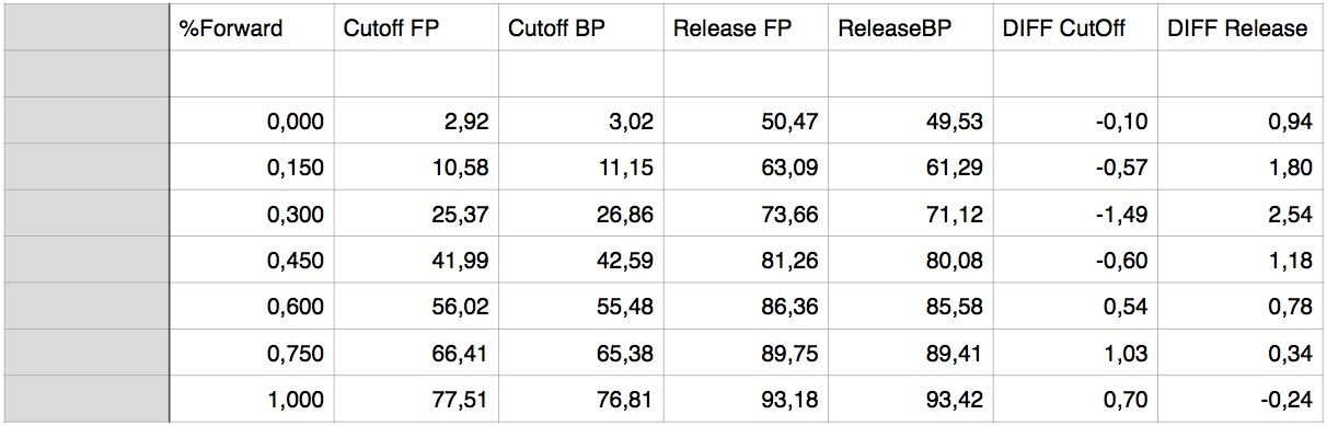 Per a la optimització he prioritzat la marxa endavant, amb divergències de menys de l’1,5% per a tots els talls de vapor (cut off), a canvi de un 4% com a màxim per la marxa enrere.